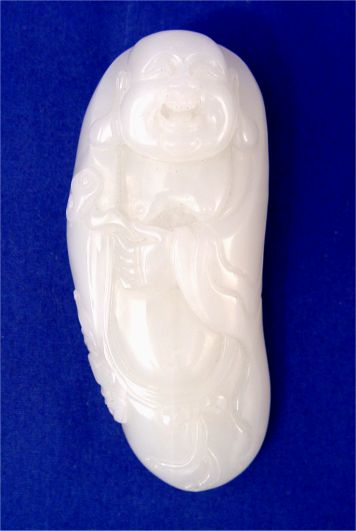 CHINESE CARVED WHITE JADE MODEL OF SLEEPING BUDDHA: 4 1/4''l. Est. $500/600**