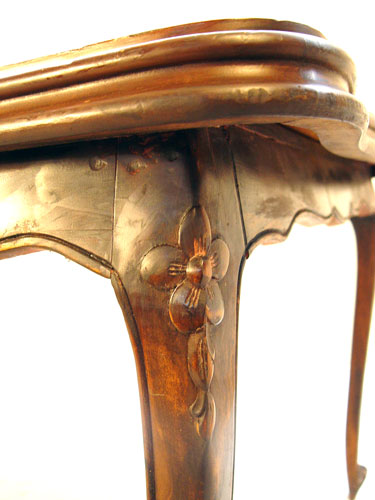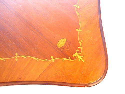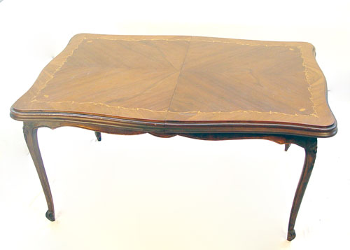 FRENCH STYLE MARQUETRY INLAY DINING TABLE: Shaped and inlay top, shaped apron, cabriole legs. 31''h. x 42'' x 63''.