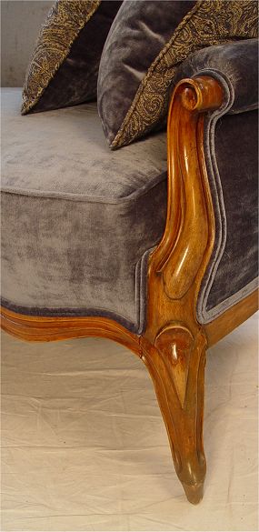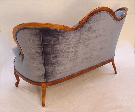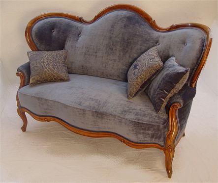 BIEDERMEIER QUALITY VICTORIAN WALNUT SOFA: Made in the Drossenfeld, Germany area in the 1880's. Molded frame, good velvet tufted upholstery with complimentary pillows. 45''h. x 67'' long x 33''.