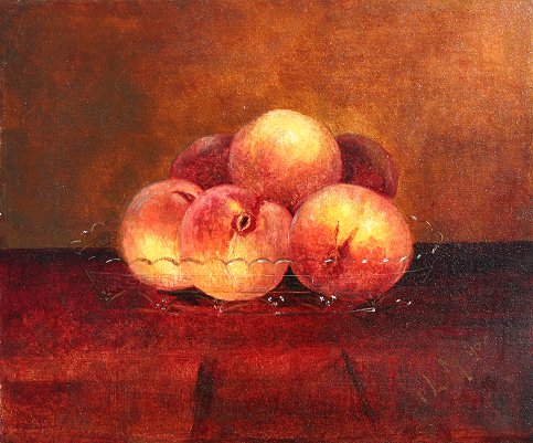 NOYES, George Loftus, (American, 1864-1954): Still life of Peaches, O/C, 10'' x 12'', signed and dated '01. Professionally restored, relined, inpaint and repairs to tears visible by blacklight only. Est. $800/1200**