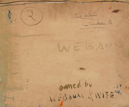 BAUM, Walter, (American, 1884-1956): Early Autumn near Quakertown, O/B, 16'' x 20'', signed, titled verso, marked property of W.E. Baum and wife, period frame with wear, 20'' x 24''. Est. $7000/9000**