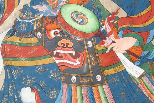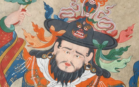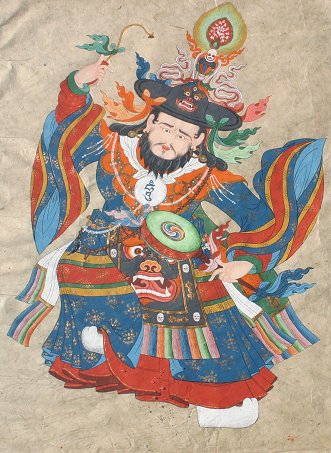 FAR EASTERN GOUACHE OF A MAN IN CEREMONIAL GARB: 29'' X 24'', museum mounted, 25'' x 29'', age unknown.