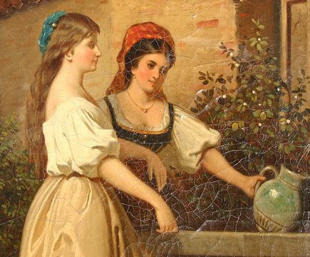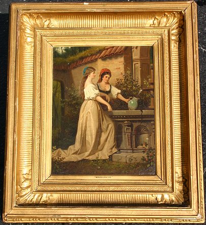 SIGNED 19TH C O/C EUROPEAN GENRE SCENE: Titled ''Marguarite'', 15 1/2'' x 12 1/2'', period frame, 22'' x 19''.