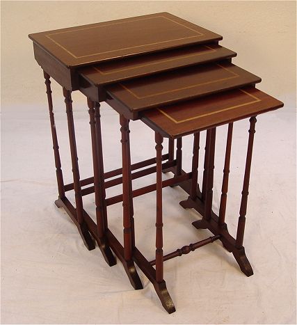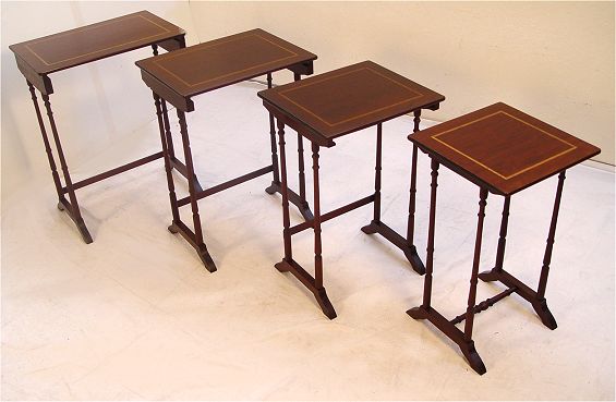 NEST OF 4 INLAY MAHOGANY SIDE TABLES: The largest is 28''h. x 22 1/2'' x 15''.