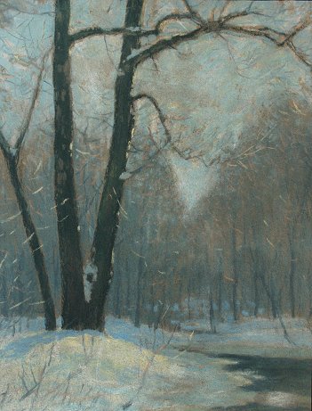 AMERICAN WINTER STREAM PASTEL LANDSCAPE CIRCA 1920: 9'' x 12'', no visible signature, framed, 15'' x 18''.
