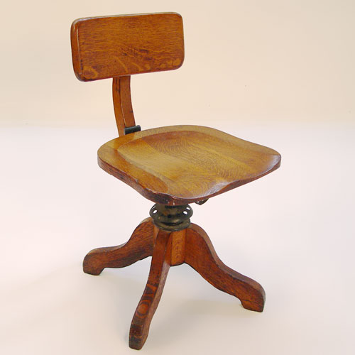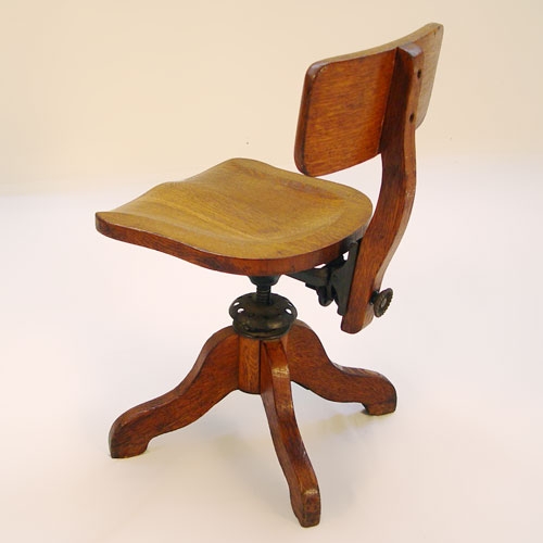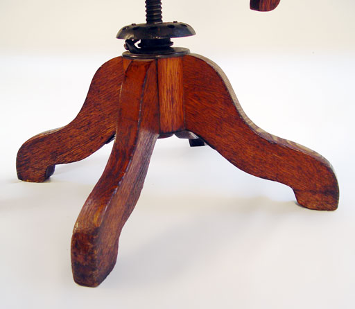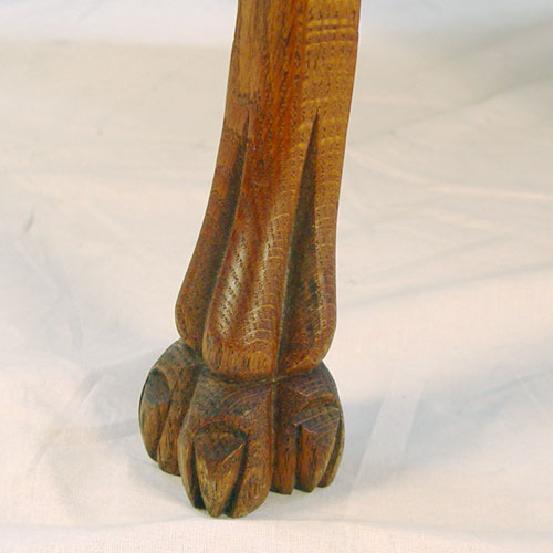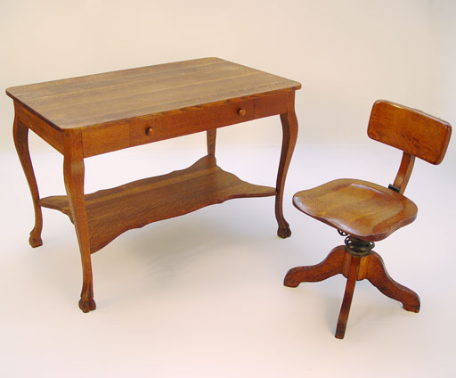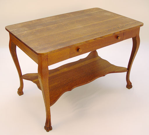 TIGER OAK LIBRARY TABLE: Single drawer, claw feet, sold with oak swivel office chair. Table measures 42'' x 26'', 29''h.