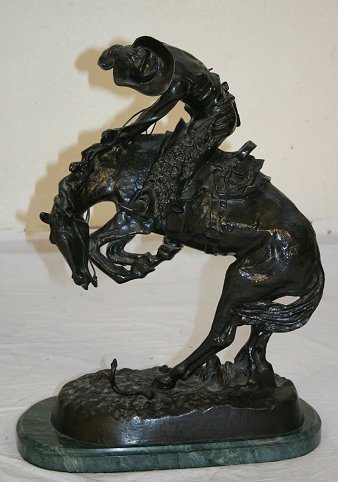 REMINGTON BRONZE SCULPTURE RATTLESNAKE RECAST: 23'' h., green marble plinth.