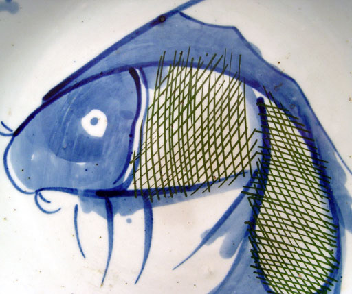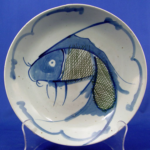 CHINESE COBALT DECORATED BOWL: Fish design, signed in characters, 9 1/2''