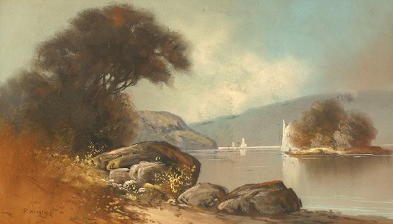 KOEHLER, Paul, (American, 1866-1909): Hudson River School style Lakeside Scene, Pastel, 13 1/2'' x 23 1/2'', signed, original frame, 20 1/2'' x 30 1/2''.