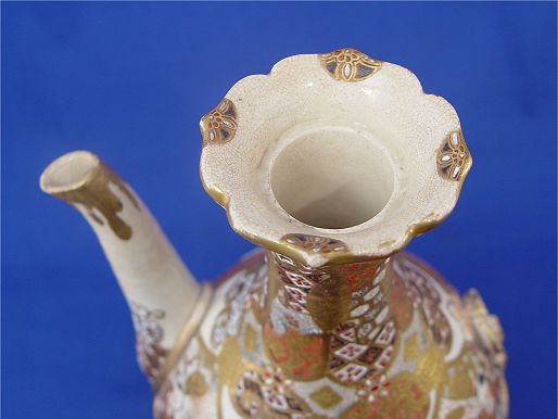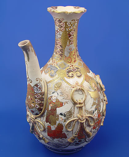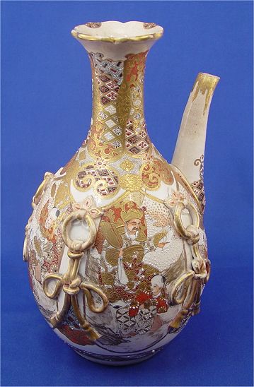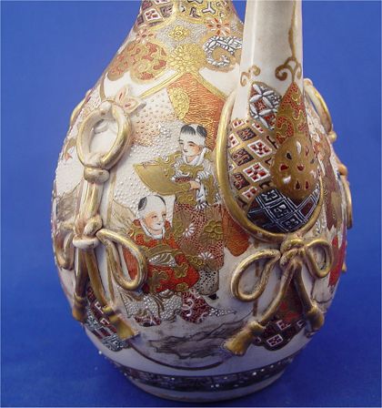 JAPANESE SATSUMA WINE VESSEL: Kozan, scholars and children knotted rope design, signed. 11''h.