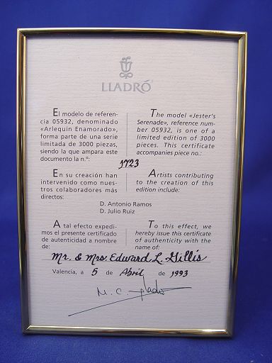 LARGE LLADRO FIGURE ''JESTERS SERENADE'': #05932, limited edition of 3000. 14 1/2'' h.