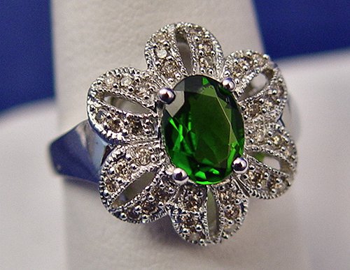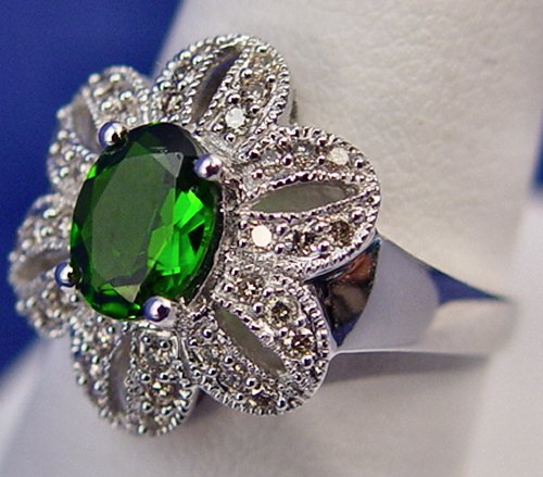 TOURMALINE & DIAMOND RING: Approx. 2.50ctw. of oval cut green tourmaline and tiny diamonds set in 14k white gold, size 9.25, 4.1 grams.