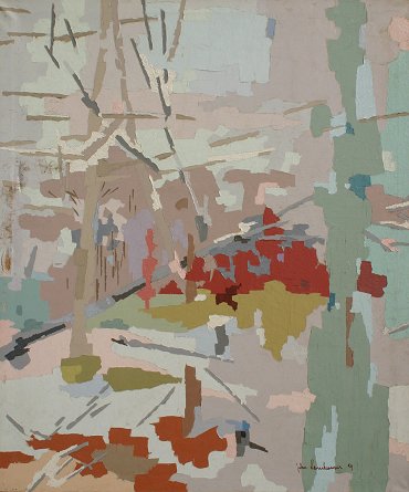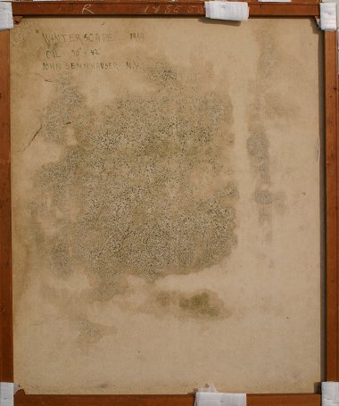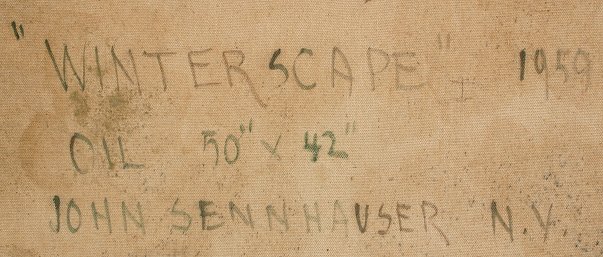 SENNHAUSER, John, (American, 1907-1978): ''Winterscape'', O/C, titled verso, signed lower right & dated 1959, 50'' x 42''. Damage in left margin, needs cleaning. Ervin Litkei Collection Est. $2000/4000**
