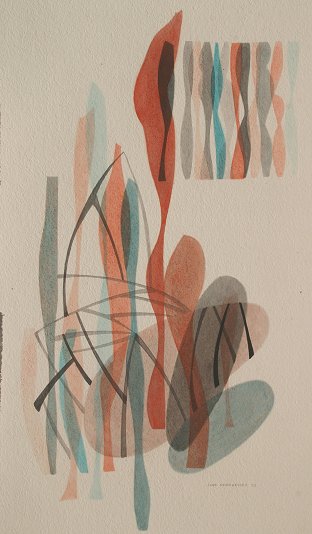 SENNHAUSER, John, (American, 1907-1978): Geometric Abstract Composition, W/C, signed lower right, dated 1952, 15 1/2'' x 9''. Ervin Litkei Collection Est. $1500/2500**