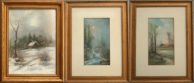 3 DEGRAFF PASTEL LANDSCAPES: Circa 1900, 12'' x 6'', one piece is signed, all are framed, 20 1/2'' x 9 1/2''.