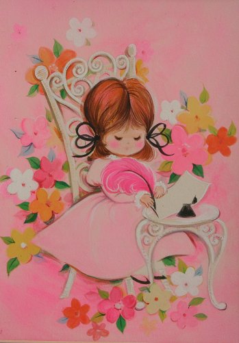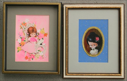 2 GREETING CARD PROOFS: Depicting delicate young ladies, both framed, overall size 11 1/2'' x 9 1/2''.