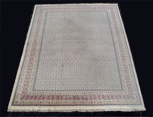 HAND TIED ORIENTAL CARPET: Approx. 8'2'' x 11'5''. All over floral design on neutral to pink ground.