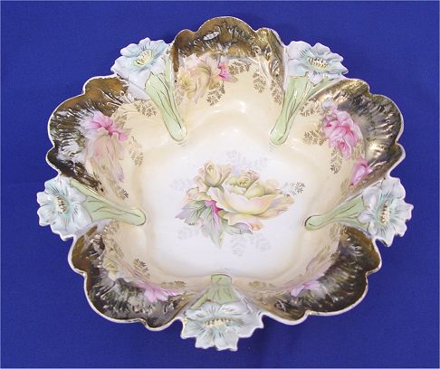 ROSE DECORATED RS PRUSSIA QUALITY BOWL: Unsigned, flower molded form. 10 1/2'' dia.