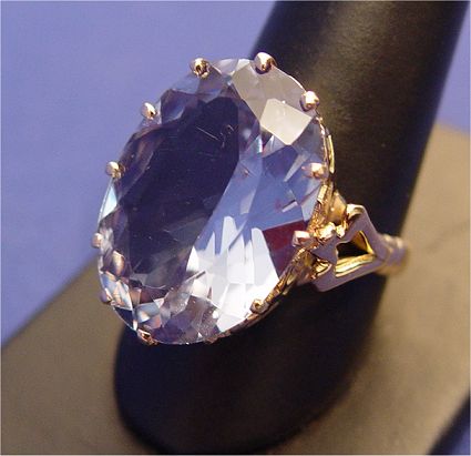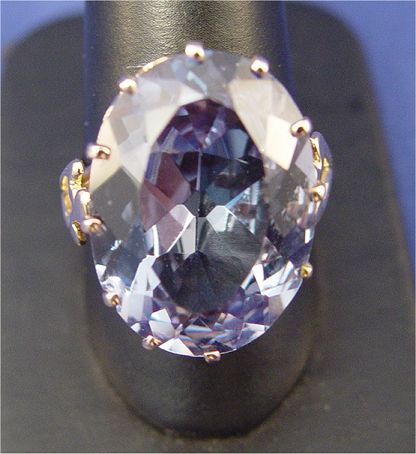 BIG BEAUTIFUL BLUE BAUBLE: Oval cut blue stone, possibly synthetic spinel, approx. 17.5 x 23.5 x 9mm, prong mounted in 14k yellow gold, stamped, size 10, 11.3 grams.