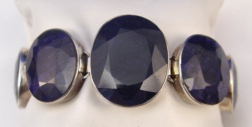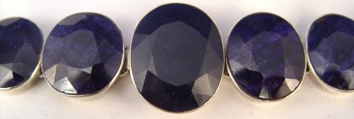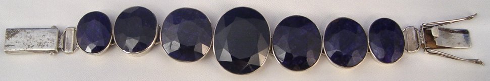 249CTW NATURAL SAPPHIRE & STERLING BRACELET: 7 medium oval stones measuring from approx. 13 to 58cts, bezel set in sterling, pressure clasp with double safety latches, marked 925, 7.5''l., 75.4 grams.