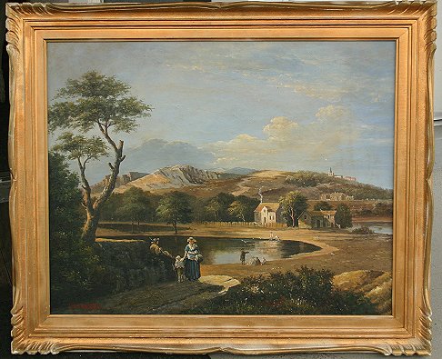 VANNUETTEN, Leon, (Belgian, 1877-1958): Italianate Landscape, O/C/B, 24'' x 30'', signed, gold frame, 30'' x 36''. Some minor bubbling of canvas, several flecks.
