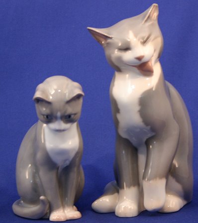 2 BING 7 GRONDAHL CAT FIGURES: #2256 SL, 7 1/4''h. with chip on ear, and #1876 B, 5''.