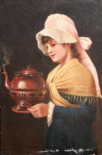 LIDDERDALE, Charles, (British, 1813-1895): Tea Time, O/Wood Panel, 10 1/2'' x 7'', monogrammed, unframed. Some cracklure, needs cleaning. Est. $1500/2500**