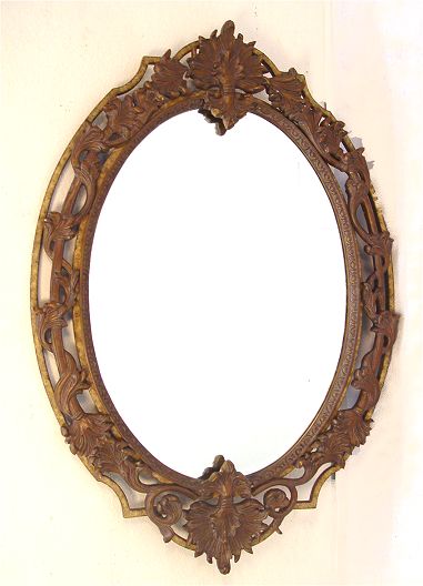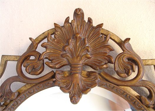 LARGE DECORATIVE ROCOCO STYLE MIRROR BY LA BARGE: Beveled glass in a scrolled gesso frame with iron surround. Minor paint loss on the iron. 58'' X 41''.