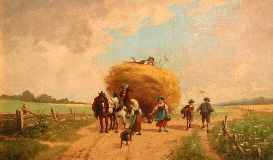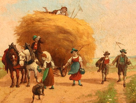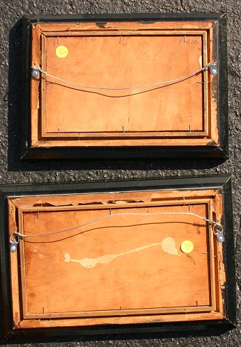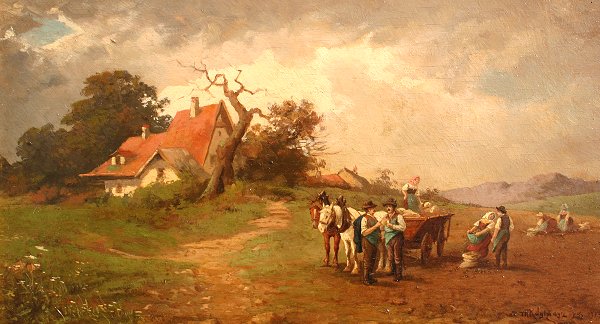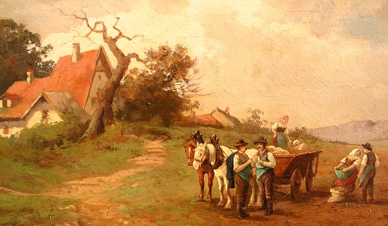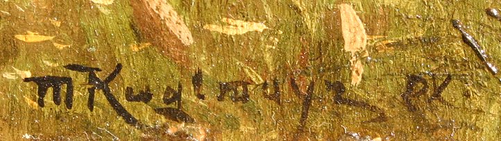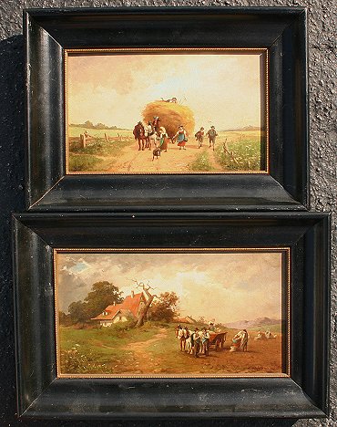 KUGLMAYER, Max, (German, 1863-): Pair of Genre Landscapes, O/B, 5 3/4' x 9 1/2'', (9 1/2'' x 13''), and 6 1/4'' x 11 1/4'', (10'' x 14 3/4''), encased in matching black frames, both signed, one is dated 1919, Munchen.