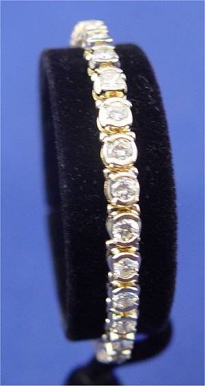 6CTW DIAMOND TENNIS BRACELET: 14k yellow gold tennis bracelet set with 34 round brilliant cut diamonds, approx. 3.5 to 3.6 mm, VS clarity and IJK color, 7''l., hidden box clasp with safety latch, 20.8 grams. 1993 appraisal by a graduate gemologist in Overland Park Kansas, $8550 estimated retail replacement value. Est. $4000/5500**