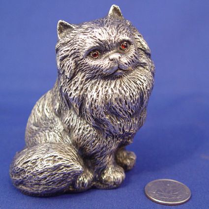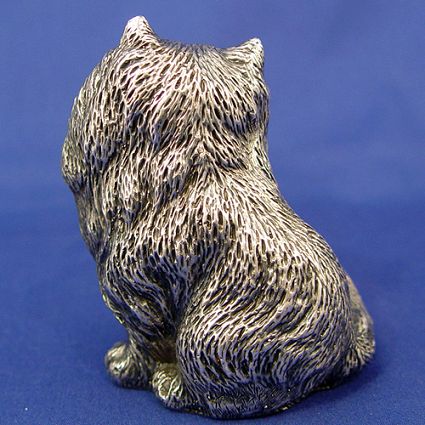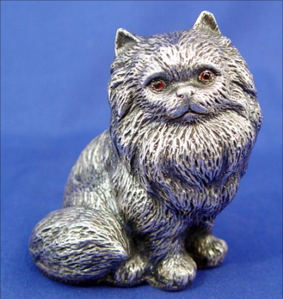 RUSSIAN SILVER IN THE FORM OF A PERSIAN CAT: Silver paperweight with neillo gilding and ruby eye. Maker stamp is SW. Stephan Wakeva, 1833-1910. He was listed as a well known silver workmaster in the Faberge silver studio. 3 1/2''. 14 oz. weighted.
