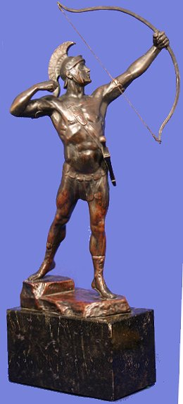 HAMBURGER, E.,(European, 20th C.): Archer Bronze, 15'', signed, replaced bow string, incised signature, Werkstatte foundry mark.