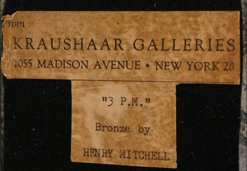 MITCHELL, Henry, (American, 1915-1980): ''3 P.M.'', Bronze , 10 1/4'' h., Kraushaar Galleries label affixed to base.