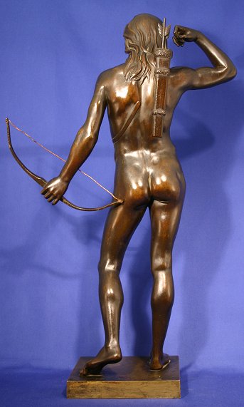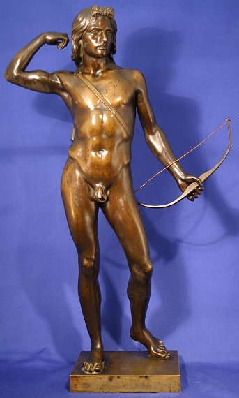 EXCEPTIONAL BRONZE ARCHER: Early 19th C. Bronze Sculpture of Nude Male Archer, 22'' h., unsigned. Some wear to patina, replaced bowstring.