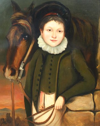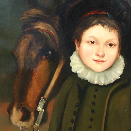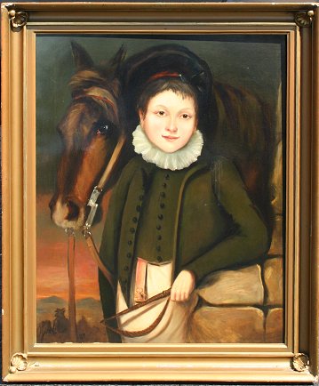 19TH C. O/C OF BOY WITH HORSE, SIGNED JOHN COLLIER: 31'' x 25'', period gilt frame with wear, 36'' x 30''. Relined, scattered inpaint. Est. $800/1200**