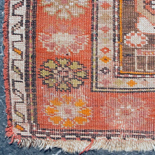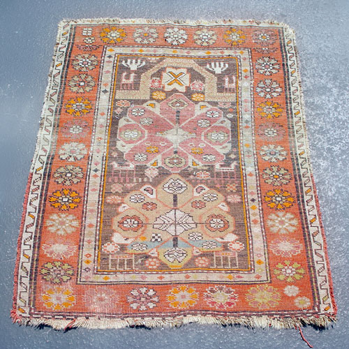 SEMI ANTIQUE CAUCASIAN RUG: Approx. 3'9'' x 4'11''.