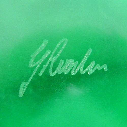 ARTIST SIGNED INTAGLIO CUT ART GLASS VASE: Cut in a birch tree design, unidentified signature as seen in photo. 11''h., 4 7/8'' at the rim, 7'' dia. at the widest.