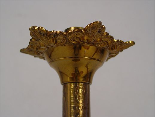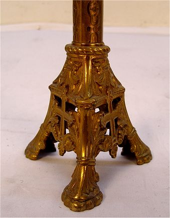 PAIR OF BRASS AESTHETIC CANDLE STICKS: Tall altar candle holders, tri legged, 23''h, the base is 6 1/2'' wide.