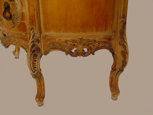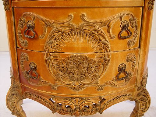 FRENCH CARVED DEMI LUNE CHEST: 3 drawers, marble top, 31''h. x 30 1/4'' x 16 1/4''