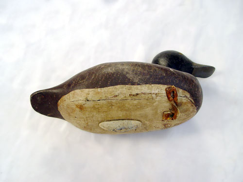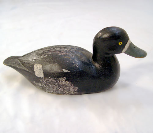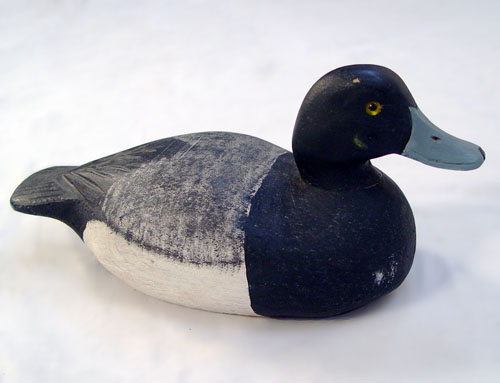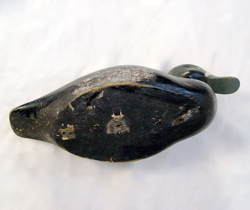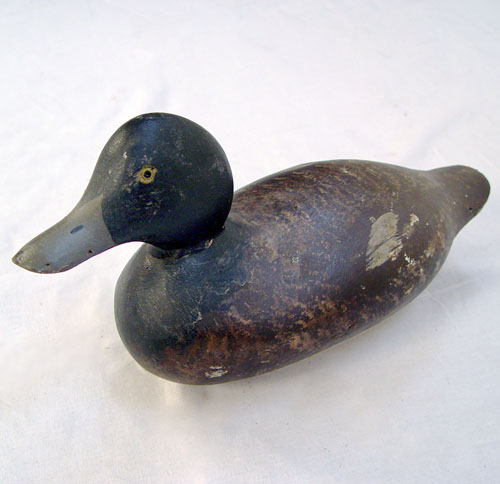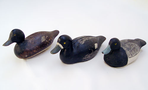 3 OLD CARVED WOOD DUCK DECOYS: All three are hand carved and painted, one with glass eyes. 6-7'' tall, 13'' long.