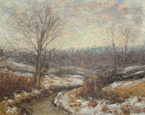 NEWMAN, Harry W., (American, 1873-): ''Spirit of Winter'', O/C, 17'' x 20'', signed & dated '08, titled verso, period gilt frame, 22'' x 25'', speck of label verso. Needs cleaning, several small areas of possible older inpaint.