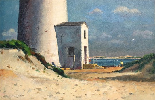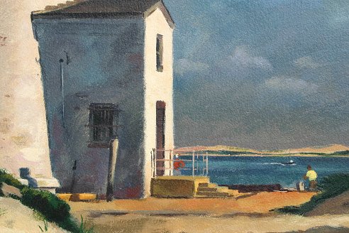 MARTINO, Giovanni, (American, 1908-1998): Lighthouse Landscape, O/P, 16 3/4'' x 25 3/4'', signed, framed and matted, Newman Galleries label verso.