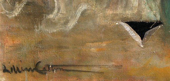 COTTON, Lillian, (American, 1892-1962): ''Consolation'', O/C, 45'' x 31'', signed, unframed. Several punctures, small flecks in left margin, needs cleaning. Biography from Butler Institute of American Art: Born in New York City on April 1, 1901. Education: Andre Lhote Academy in Paris; Art Students League with Robert Henri and George Bellows. Member: National Association of Women Artists; New York Society of Women Artists; Societe Nationale des Beaux-Arts in Paris. Exhibited: National Association of Women Artists in 1946; Pennsylvania Academy of Fine Arts in 1930; Corcoran Gallery of Art in 1930; Paris Salon; National Academy of Design; New York Society of Women Artists.