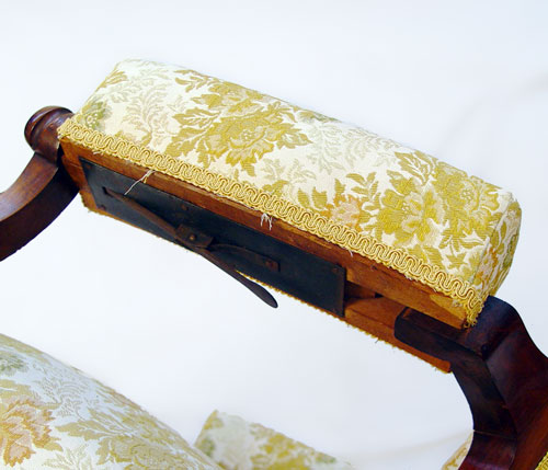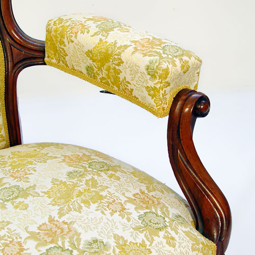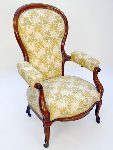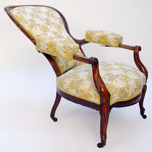 FRENCH ROSEWOOD VICTORIAN RECLINING PARLOR CHAIR: Fine parlor chair with the mechanism under the arm rests. 44''h. 28 1/2'' x 24''.