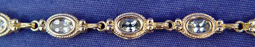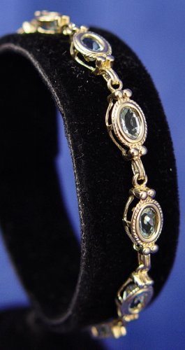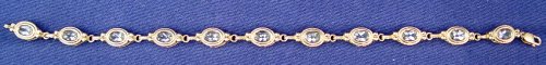 6CTW AQUAMARINE BRACELET: 14k yellow gold link bracelet with each link set with its own oval brilliant cut aquamarine, 7 inch, 8.3 grams.
