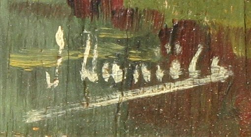 DANIELS, J., (American, 20th C.): Dirt Road, O/B, 12'' x 16'', signed, older repainted frame, 16'' x 20''. Cracklure throughout.