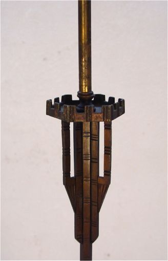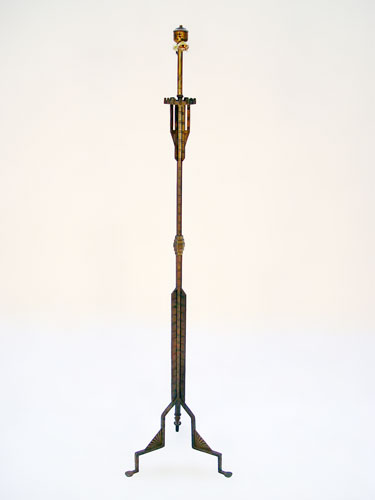 VINTAGE 1920'S WROUGHT IRON FLOOR LAMP in the manner of OSCAR BACH: Architectural lines, unsigned, 61''h.