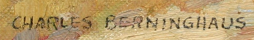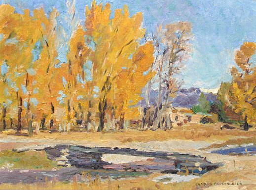 BERNINGHAUS, Charles, (American, 1905-1988): Autumn Landscape, O/CB, 12'' x 16'', signed, whitewash frame, 16'' x 20''.