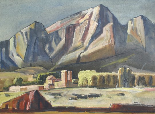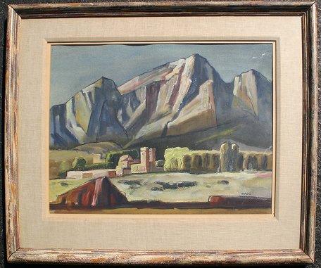 KOPIETZ, Edmond J., (American, 1900-?): ''New Mexico Country'', Gouache & W/C, 21'' x 29'' sight size, signed, worn period frame, 30'' x 38''.