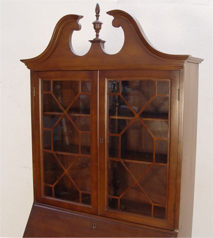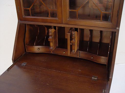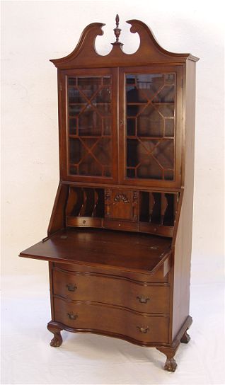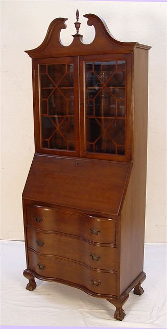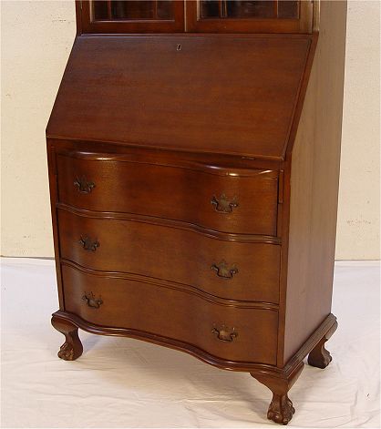 GOVERNOR WINTHROP STYLE SECRETARY BOOKCASE DESK: Bookcase over a slant front desk, 3 drawer serpentine front. 79'' x 31'' x 18''.